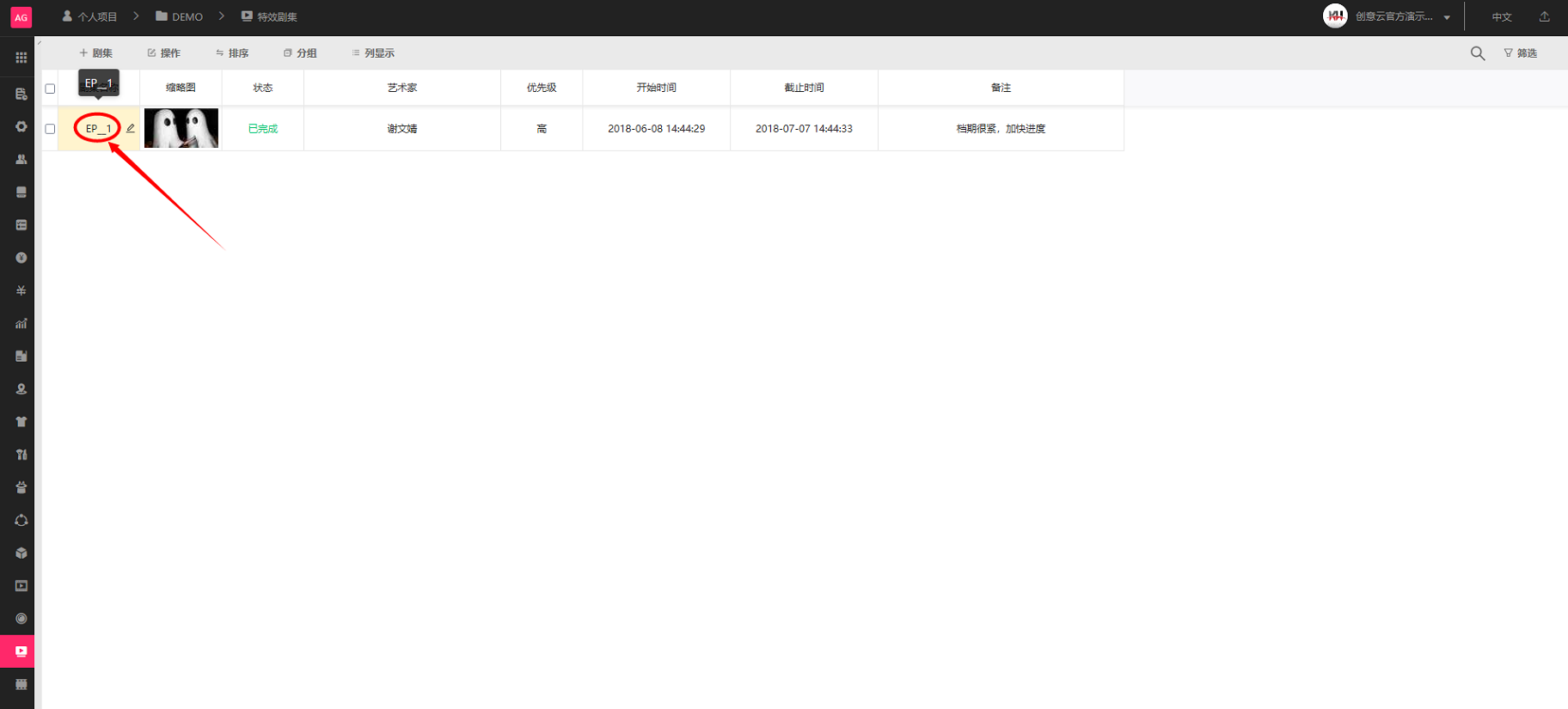 单击单个特效剧集任务名称,即可展开特效剧集任务的详情面板。