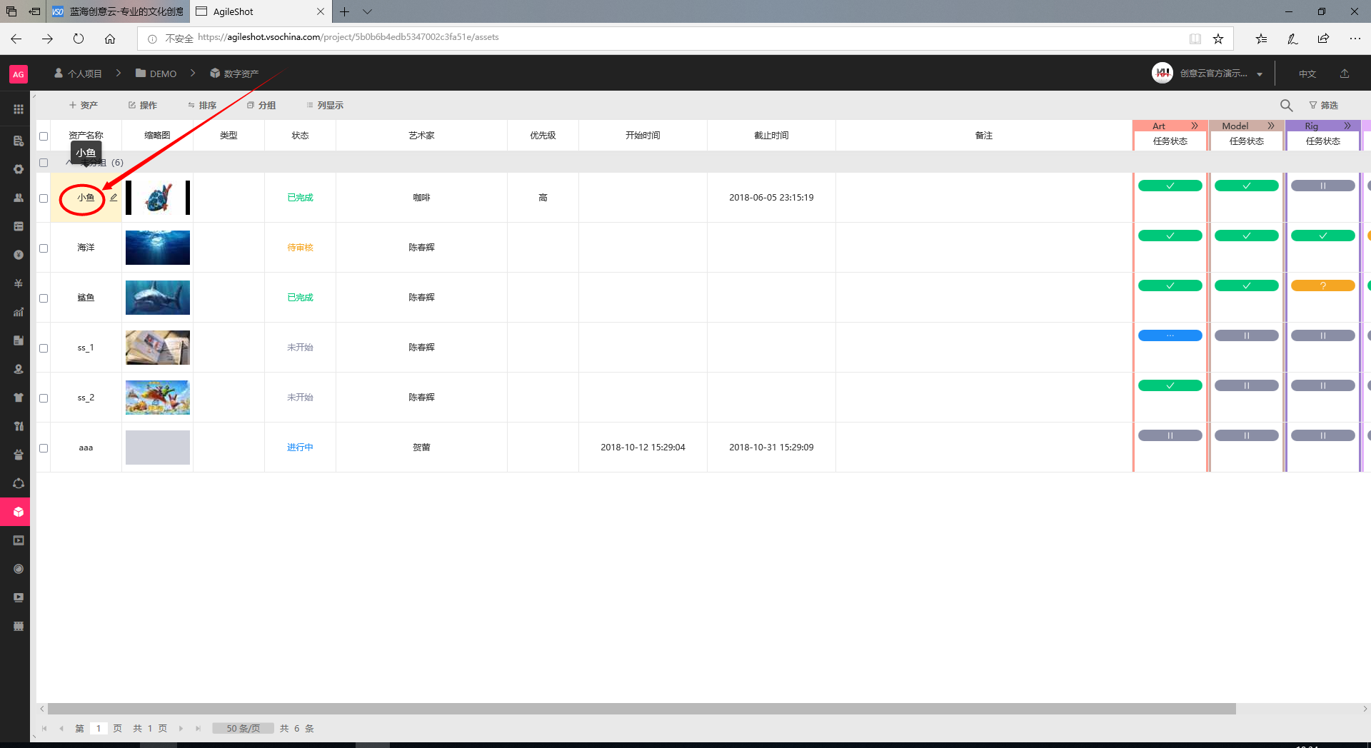 单击单个数字资产任务名称,即可展开数字资产任务的详情面板。