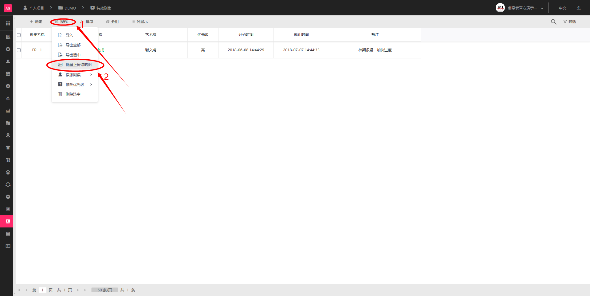 在特效剧集里如何批量上传缩略图?