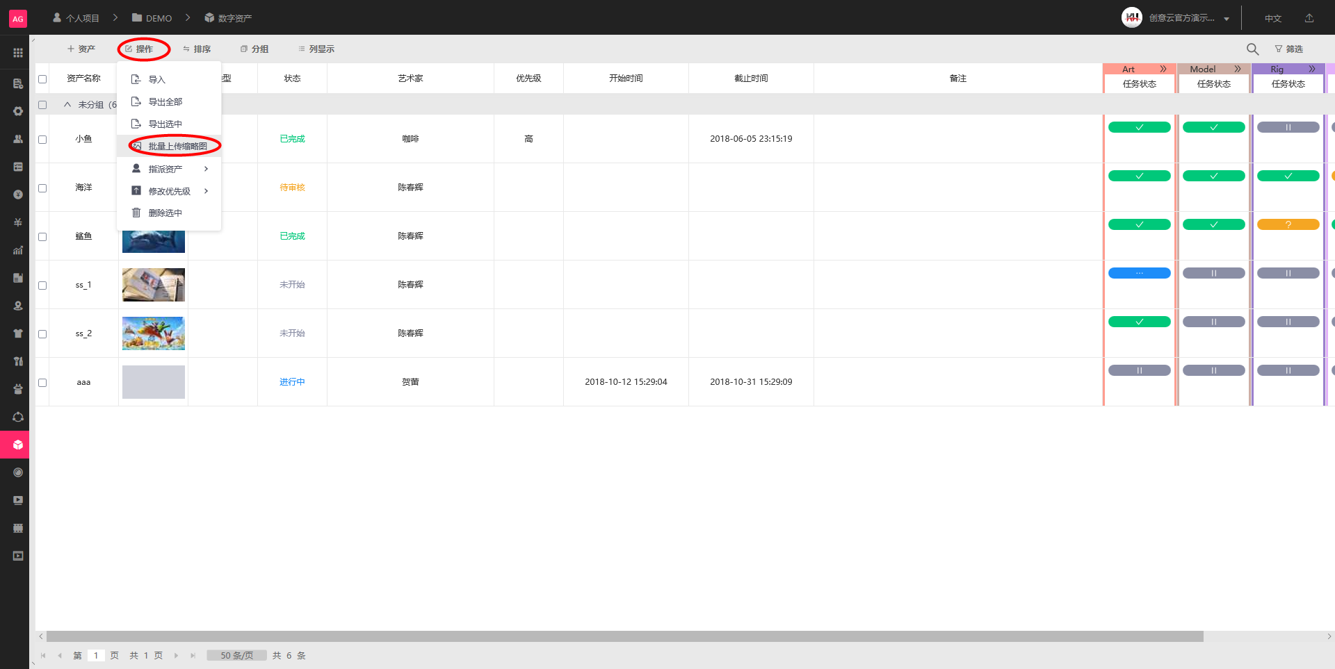 点击“操作”-“批量上传缩略图”,点击选择或将文件拖拽到指定区域,根据系统提示进行批量上传操作。