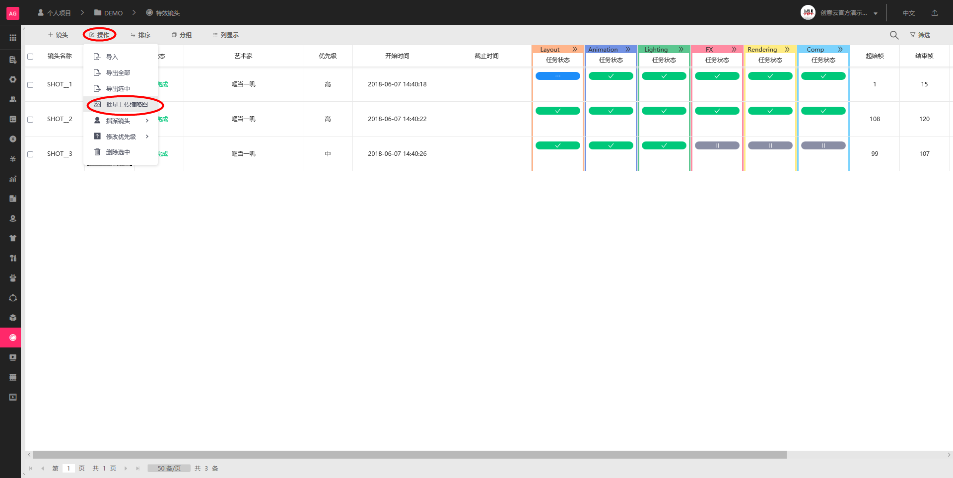 特效镜头/制作任务调度/报表